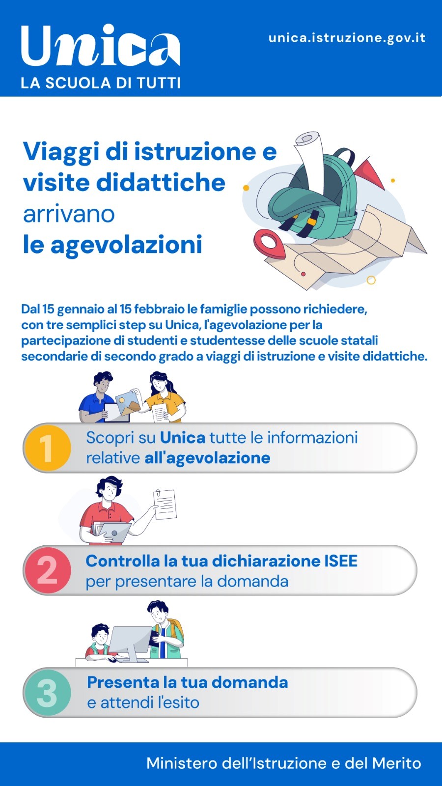 È possibile richiedere l’agevolazione per facilitare la partecipazione degli studenti a viaggi di istruzione e uscite didattiche.