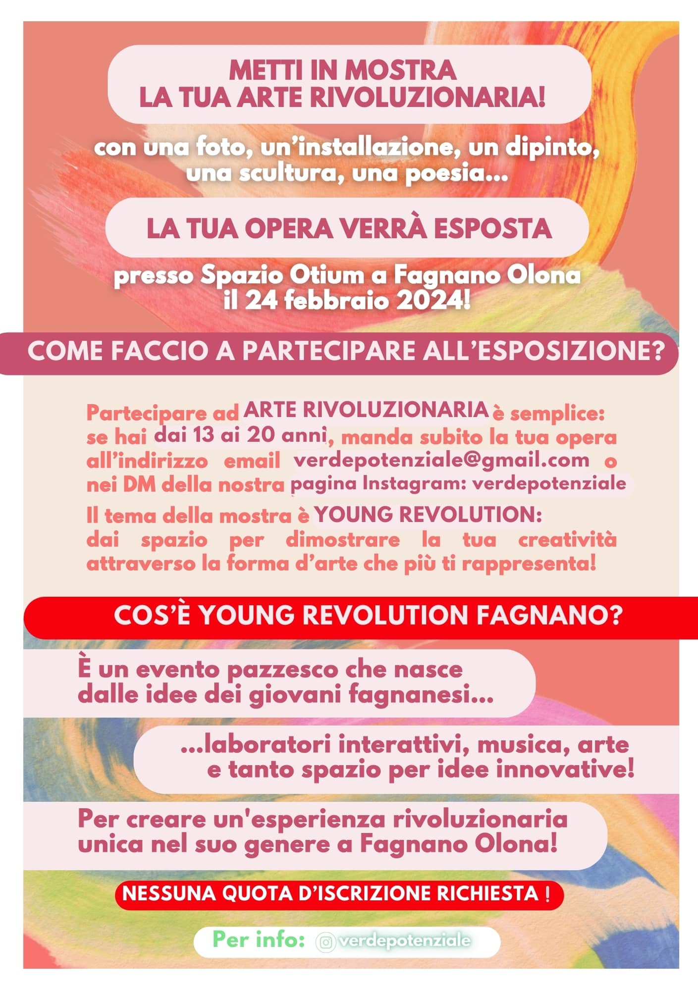 Nell’ambito del Progetto Verde Potenziale, presso lo Spazio Otium (via Patrioti 35 Fagnano Olona) e in collaborazione con l’associazione Otium-arte Pedagogica, sabato 24 febbraio dalle ore 16 alle ore 19, il Gruppo Giovani di Verde Potenziale racconta la storia della Young Revolution Fagnano attraverso una mostra interattiva.