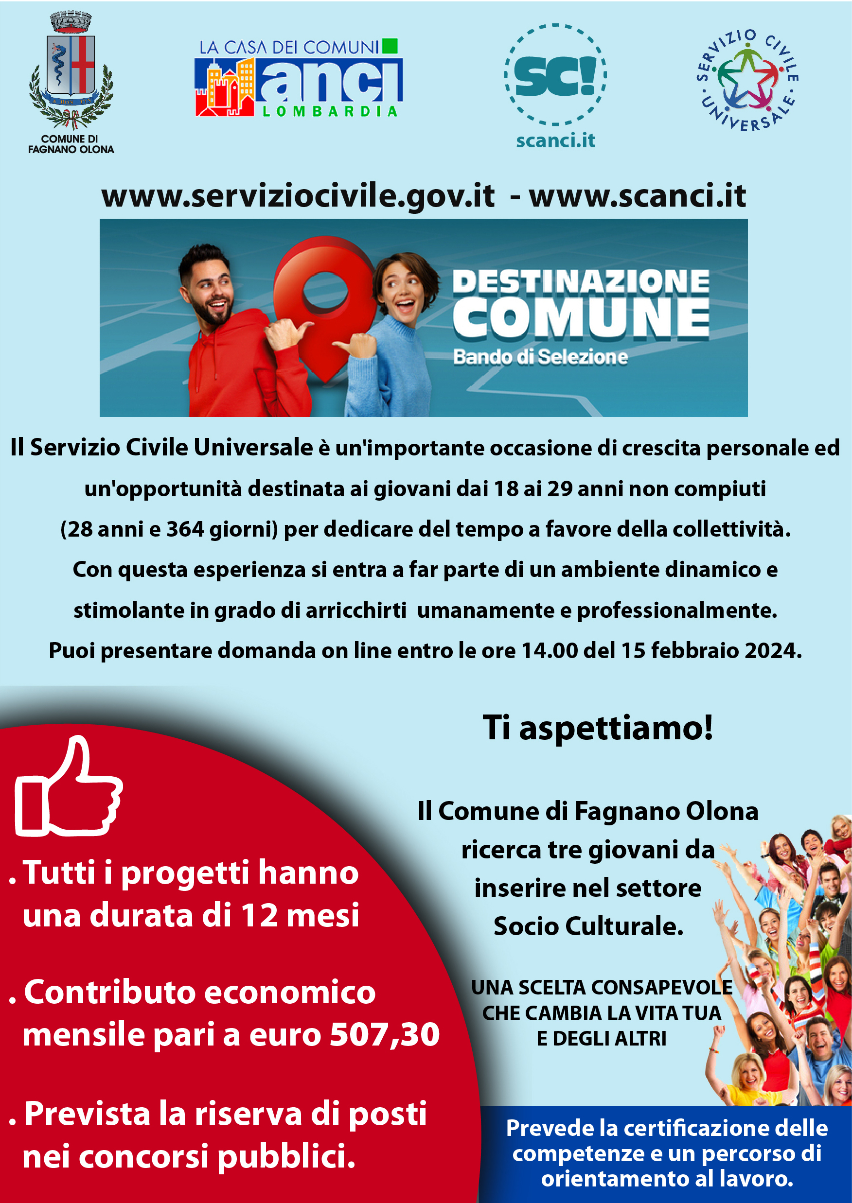 Puoi presentare domanda on line entro e non oltre le ore 14.00 del 15 febbraio 2024 collegandoti qui