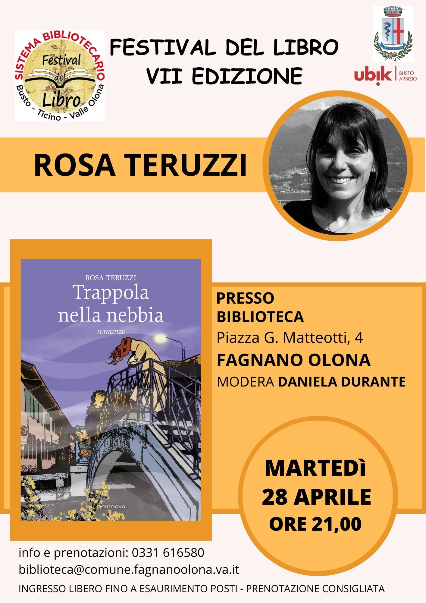 Martedì 28 aprile, alle ore 21.00,presso la biblioteca comunale Enzo Biagi, ultimo appuntamento, in attesa della ripresa autunnale, della rassegna “Festival del Libro”, iniziativa del sistema bibliotecario Busto-Ticino-Valle Olona, arrivata alla settima edizione.