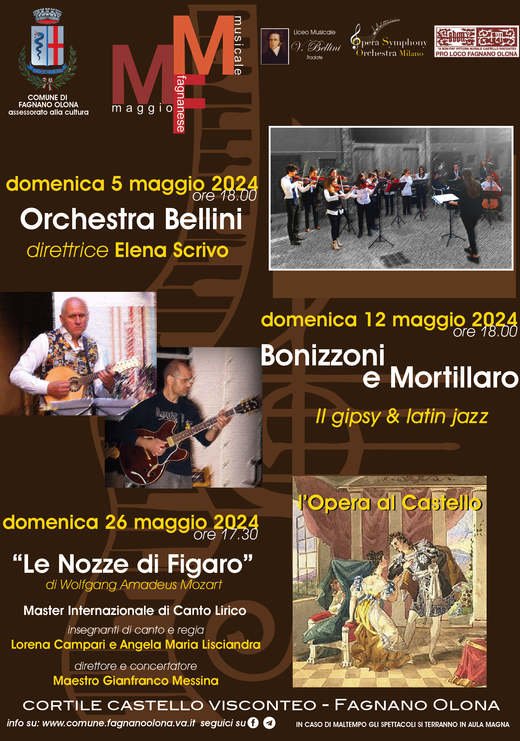 - domenica 12 maggio, alle ore 18, “Il Gipsy & Latin Jazz” con Bonizzoni e Mortillaro