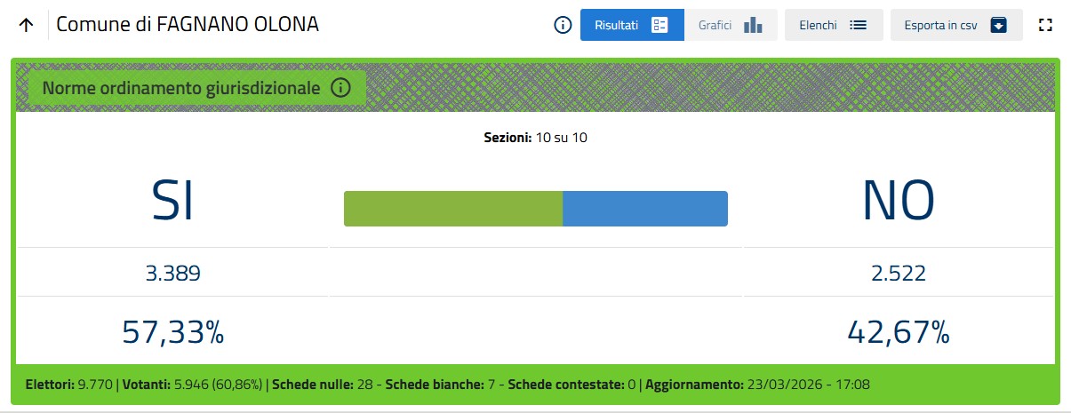 Di seguito si riporta l’esito delle consultazioni elettorali nel Comune di Fagnano Olona.